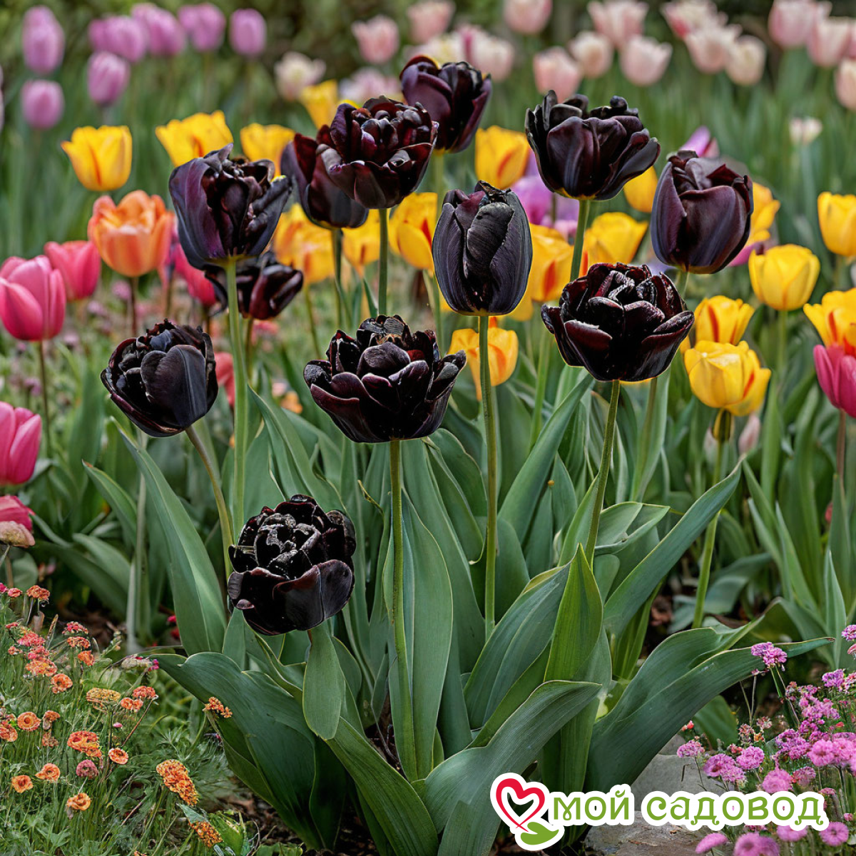Махровый тюльпан «Рейдинс Дарк» – это уникальное растение, которое станет настоящей изюминкой вашего сада. Высота растения достигает 35–45 см, что делает его идеальным для создания ярких цветочных композиций. Листья насыщенного зеленого цвета, крупные и широкие, придают «Рейдинс Дарк» эффектный вид. Основная характеристика сорта – его темный, практически черный цвет цветков, который особенно притягателен в контексте весеннего цветения. Наш интернет-магазин «Мой Садовод» радует клиентов высоким качеством саженцев и быстрой доставкой. Мы работаем на рынке около 10 лет, сотрудничаем с лучшими поставщиками и развиваем собственный питомник, что позволяет нам гарантировать высшую сортность товаров по самым выгодным ценам. У нас вы можете заказать саженцы недорого, а качественная упаковка обеспечит сохранность ваших растений при доставке почтой. История сорта «Рейдинс Дарк» уходит в европейские ботанические традиции, и его популярность продолжает расти. Для успешной посадки необходимо выбирать солнечное место с хорошей дренажной системой. Уход включает регулярный полив и подкормку, что обеспечит надлежащее развитие кустов и яркое цветение в течение